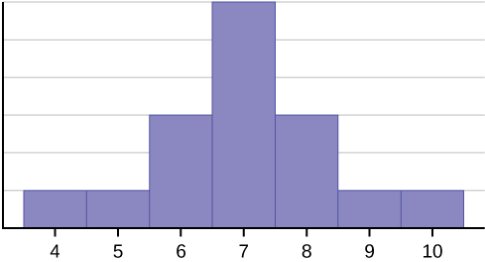 또한 평균과 중앙값은 왜도에 따라 다르게 나타납니다. 데이터가 오른쪽으로 치우치면(mean > median), 왼쪽으로 치우치면(mean < median) 형태가 됩니다openstax.org. 즉, 평균은 극단값(outlier)에 민감하므로 이상치가 많다면 중앙값이 대표성을 더 잘 보입니다. 예를 들어, 아래 히스토그램(그림)은 대칭/편향 분포 예시입니다. 중앙 막대들은 데이터가 6~8 사이에 몰려 있으며, 왼쪽 예시(그림1)는 대칭이지만 오른쪽(그림2, 3)은 꼬리가 왼쪽/오른쪽으로 길어 평균과 중앙값이 다르게 나타납니다openstax.orgopenstax.org.